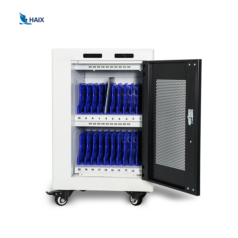 HAIX รถเข็นชาร์จแท็บเล็ตสำหรับ ipads 20พอร์ต USB ไฟแสดงสถานะสถานีตู้โซลูชันการชาร์จแท็บเล็ต